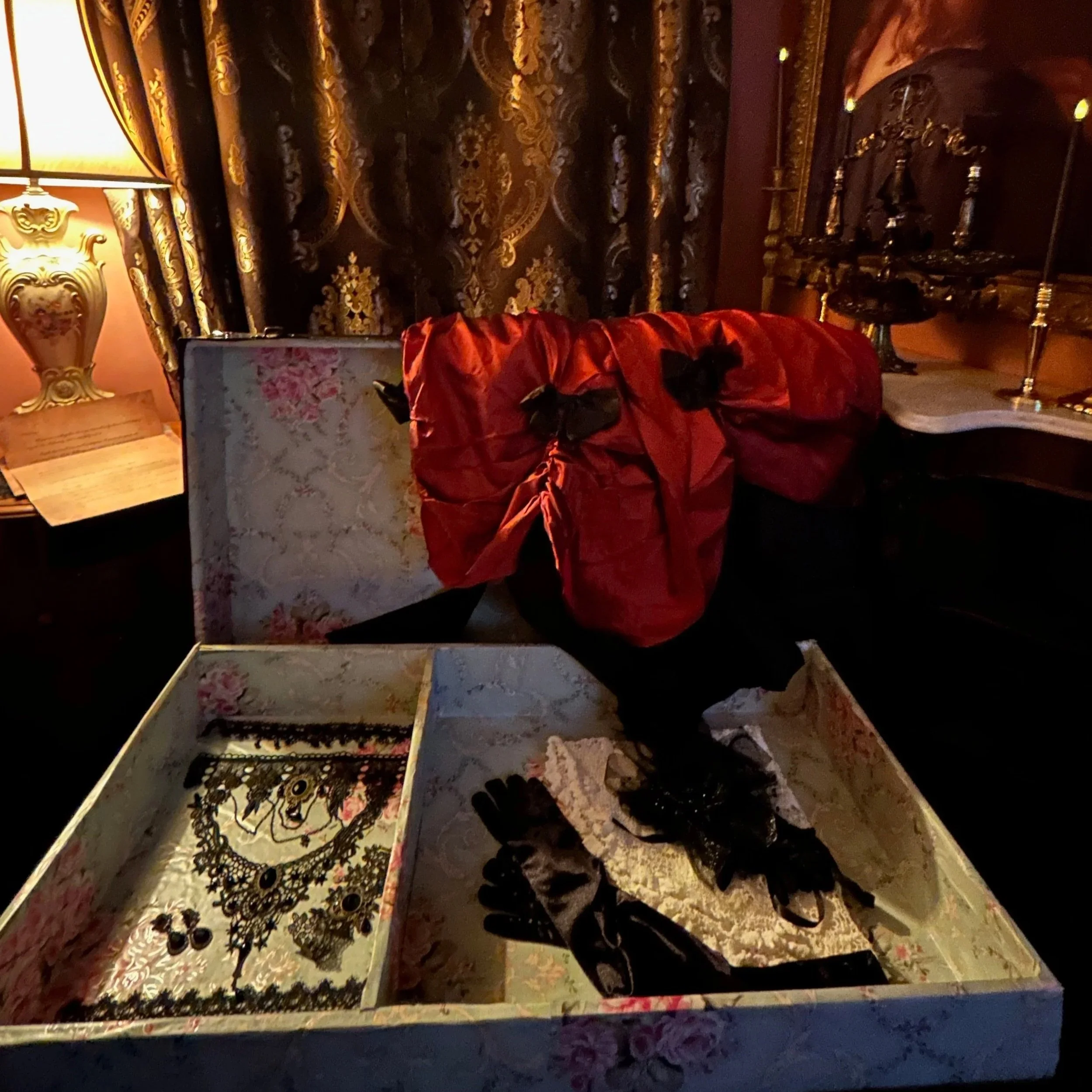 This immersive experience includes access to Katherine’s iconic steamer trunk—filled with dramatic gowns, accessories, and details designed for photos, role-play, and unforgettable memories.